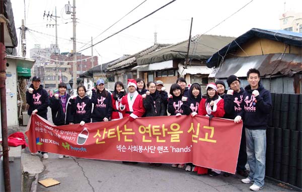 ...㈜넥슨(대표 서민, 강신철)은 지난 12일 월드비전 산하 서울 송파 복지관과 연계된 송파구 일대 저소득층 가구 50곳에 연탄을 비롯한 겨울나기 물품을 전달했다. 이날 봉사에 참여한 넥슨 사회봉사단 ‘핸즈(hands)’는 연탄 5천 장과, 쌀(10kg) 50 포대, 넥슨 캐릭터