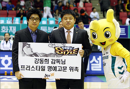 ...com, 이하 JCE)는 지난 12일 원주치악체육관에서 원주 동부 프로미 농구단의 강동희 감독을 자사의 인기 농구게임 <프리스타일>의 명예고문으로 위촉했다고 밝혔다. 이번 위촉식은 지난 12일 개최된 동부 대 SK 경기 시작 전 시행됐으며 향후 강동희 감독은 <프