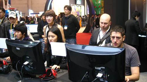 ... 지스타 개최 기간 동안 매일 4시부터 5시까지 ‘협동 타임어택 이벤트’ 가 진행되었는데, 3명씩 4팀으로 나누어 가장 빠른 시간 내 임무를 완수한 팀에게 상품을 증정했다. 그런데 둘째 날, 중간 보스 몬스터 처리 시간을 급격히 줄여 완수에 평균 12분이 걸리는 임무를 7분만에