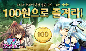 ... 조디악 온라인 GM팀은 “2009년 한 해 동안 꾸준한 관심과 사랑을 주신 유저분들의 마음에 보답하고자 진행하게 되었다”며 “이번 100원의 행복 이벤트를 시작으로 한 해가 다할 때까지 유저분들께 추억을 만들어 드릴 즐거운 이벤트를 준비하고 있으니 많은 관심 부탁 드린다”고 밝혔