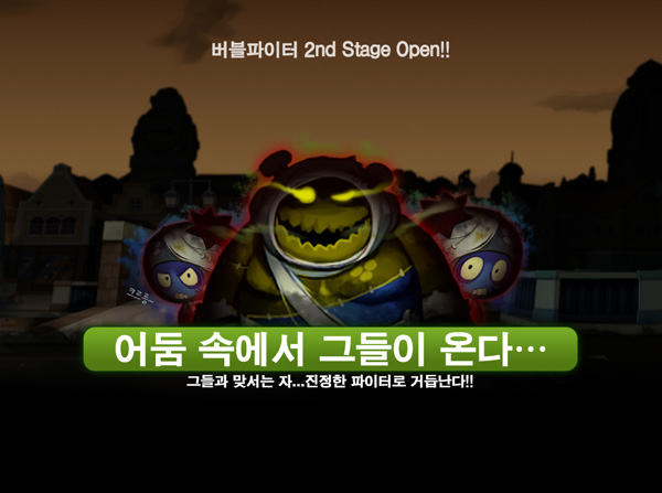 ...㈜넥슨(대표 서민, 강신철)은 자사의 대표적인 캐주얼 게임 ‘크레이지아케이드 비엔비(이하 비엔비)’와 ‘크레이지슈팅 버블파이터(이하 버블파이터)’에 17일(목) ‘좀비모드’를 업데이트한다고 밝히고, 이에 앞서 10일(목) 티저페이지를 공개한다. 비엔비와 버블파이터에 도입되는 좀비