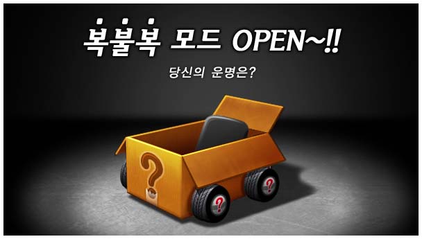 ... 확률에 의해 기능이 뛰어난 카트를 배정 받을 수 있기 때문에 초보자들의 부담이 적으며, 게임 시작 직전까지 자신의 카트를 알 수 없는 예측불허의 묘미가 있다. ‘복불복 모드’의 트랙은 ‘빌리지 운하’, ‘팩토리 모험의 시작’ 등 난이도가 쉬운14가지로 구성돼있다. 길을 헤매거