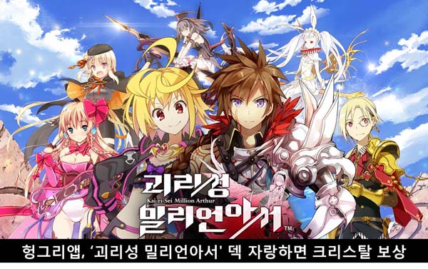 ... 이번 이벤트는 ‘내가 쓰는 덱을 소개합니다’로 ‘괴리성 밀리언아서 헝그리앱’ 커뮤니티에 자신이 사용 중인 덱에 대한 간단한 설명과 스크린샷을 함께 게재하면 추첨을 통해 크리스탈(게임 캐시)을 지급한다. 본 이벤트는 6월 28일까지 진행되며 자세한 내용은 ‘괴리성 밀리언아서