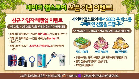 ... 이와 더불어 에브리타운은 금일 최고레벨을 기존 75에서 80으로 상향 조정하고 생산시설 2종 및 조경물 6종, 랜덤박스 3종 등 신규 콘텐츠를 추가했다. 한편 위메이드는 '에브리타운'의 네이버 앱스토어 출시를 기념해 다양한 이벤트를 마련했다. 오는 7월 20일까지 특정