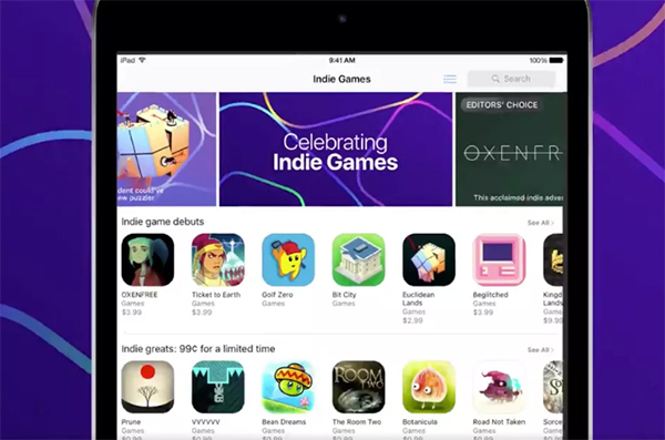 ... 여타 어플리케이션(앱) 카테고리와 비슷하게 다양한 하위 메뉴로 꾸며졌다. 인디게임은 1인 혹은 10인 미만 게임 개발사가 만든 모바일 게임으로, 창의적인 아이디어나 그래픽, 사운드 등 특정 부분에서 작품성이 돋보이는 게임이 주를 이룬다. 인디게임은 모바일게임의 과도한 과금 유도