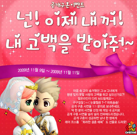 ...㈜YNK KOREA(대표 장인우)는 개그액션 RPG ‘씰 온라인’이 빼빼로데이를 맞아 게임 내 솔로 유저들을 위한 깜짝 공개 프로포즈 이벤트를 진행, 오는 11일까지 사랑 고백 사연을 접수한다고 밝혔다. 이번 이벤트는 공개 사연 접수를 통해 최종 선발된 1인에게는 쉴츠마을 곳곳에