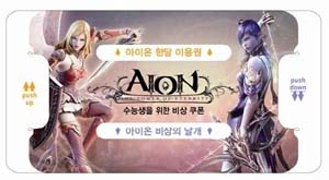 ...co. kr)에서 서비스 중인 '아이온'이 11월 10일부터 2010학년도 수능 수험생들을 대상으로 다양한 이벤트를 진행한다. 수험표를 가지고 전국 롯데시네마와 파리바게뜨 매장을 방문하는 수능생에게는 아이온 30일 50시간 신규 이용권과 ‘비상의 날개’ 아이템 및 추첨을 통해