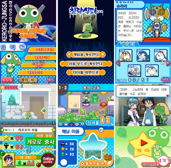 ... 전작과의 차이점은 크리스탈을 25개 이상 모으면 캐릭터마다 서포트 캐릭터를 불러내어 위기를벗어날 수 있으며, A 버튼을 계속 눌러 오오라가 발생하면 특수한 차지 공격도 발동되어 다채롭고 긴박감 넘치는 플레이가 가능한 점이다. 아울러 스테이지 중간에 향수를 불러일으키는 ‘케로