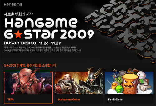 ...com)를 오픈하고,기대작 MMORPG '테라'와'워해머 온라인'을 ‘지스타 2009’에서 공개한다고 밝혔다. 한게임의 지스타 특별 페이지는▲ '테라' '워해머 온라인' '한자마루' '생활의 게임' 등 지스타 출품작 소개 ▲ ‘지스타 2009’ 한게임 주요 내용 ▲ KTX, 고속