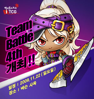 ...com)를 통해 ‘제4회 메이플스토리 iTCG 팀 배틀 대회’ 참가자를 모집한다. 메이플스토리 iTCG 팀 배틀 대회는 11월 22 일(일) 오전 11시부터 넥슨 사옥에서 진행되며, 자세한 대회 규칙 및 진행 방식 은 11월 5일 홈페이지를 통해 공지된다. 넥슨은 참가자들의 편