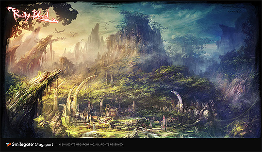 ...첫 번째 원화인 ‘대륙 나르의 탄생’은 신들이 꿈꿔온 완벽하고 평화로운 세계 ‘나르’를 그린 것으로, 신들이 대륙에 생명을 불어 넣어 그 어떤 세상보다도 아름답고 축복이 깃든 세상이다. 추후 플레이 시 기본이 되는 대륙으로, 영롱하고도 평화로운 ‘나르’의 특징이 잘 묻어난다.
