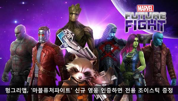 ...갤 영웅 인증'으로 신규 영웅을 동료로 획득한 화면을 '마블퓨처파이트 헝그리앱' 커뮤니티에 인증하면 추첨을 통해 게임을 보다 재미있게 즐길 수 있는 전용 조이스틱 '조이트론 EX M Air'를 증정한다. 본 이벤트는 6월 24일까지 진행하며 자세한 내용은 '마블퓨처파이트 헝그리앱