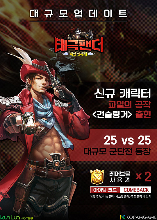 ... 신규 캐릭터 황제 '파스칼'은 마법형 캐릭터로 강력한 한방기 '파괴의 거인'과 적의 공격을 무효화시키는 '어둠의 문' 그리고 패시브 '천자의 권능'의 모든 피해 무효화, 마법력과 치명타, 약점 공격 80% 증가 효과로 강력한 시너지 효과를 발휘해 결투장과 길드전, 공성전 등
