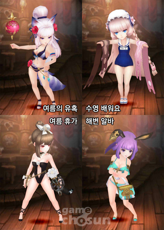 ... 강시 샤오는 귀여운 수영복 '수영 배워요'를 입고 수영 배우기에 나선다. 성십자단의 악마 봉인자 세인은 일을 끝내고 수영복 '여름 휴가'를 입고 잠시 여름 휴가를 떠난다. 늘 상점에서 용사들을 기다리던 상점 주인 엘리스 역시 수영복 '해변 알바'를 입고 바닷가로 나섰다