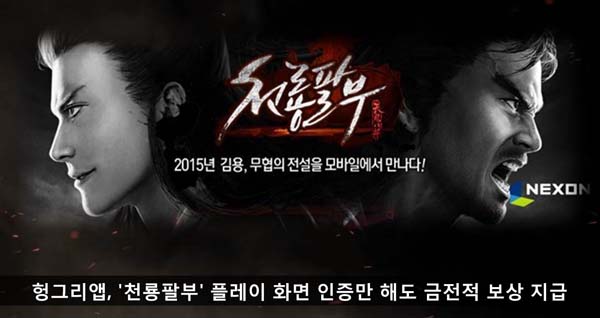 ... 이번 이벤트는 '전대미문 스크린샷 대회'로 '천룡팔부 헝그리앱' 커뮤니티에 이벤트 기간 동안 게임 화면을 캡처하여 게재하면 추첨을 통해 헝그리앱 내에서 현금처럼 사용할 수 있는 밥알 포인트를 지급한다. 본 이벤트는 6월 22일까지 진행되며 자세한 내용은 '천룡팔부 헝그리앱
