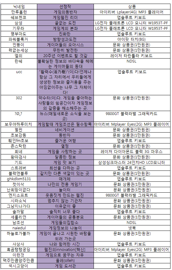 ... 게임조선을 사랑해 주시는 독자 여러분 안녕하세요. 지난 9월 10일 게임조선 창간 10주년을 맞이해 24일까지 진행한 기념 이벤트 "게임조선은 ㅁㅁㅁㅁ(이)다. " 빈칸을 채워라!! 이벤트에 참여해주신 분들께 감사의 말씀을 드립니다