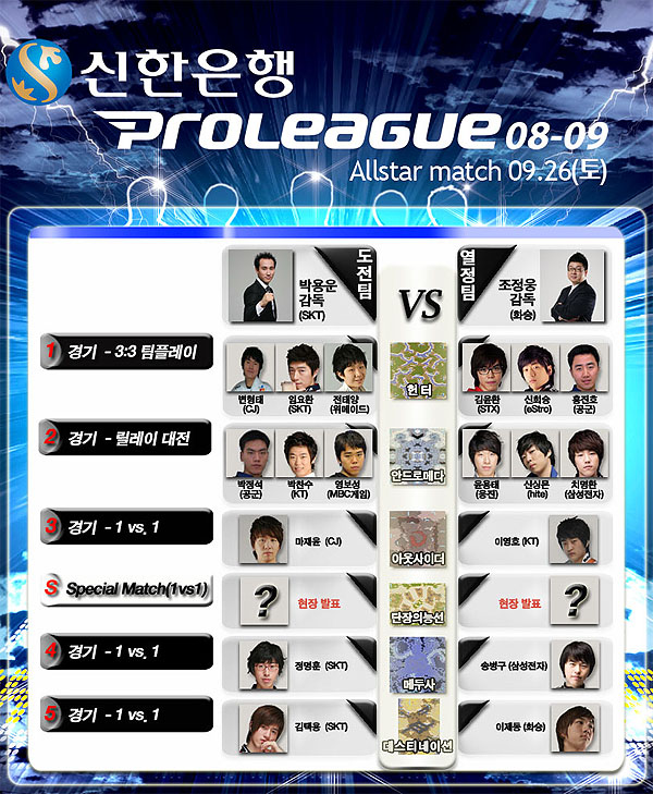 ...or. kr)는 오는 9월 26일(토) 용산 I’Park Mall 9층에서 17시부터 펼쳐질 신한은행 프로리그 08-09시즌 올스타전의 세트 별 엔트리 및 경기진행방식을 발표했다. 이번 올스타전은 팬들에게 재미있는 볼거리를 제공하기 위한 ‘별들의 축제’에 걸맞게 다양하고 흥미로운