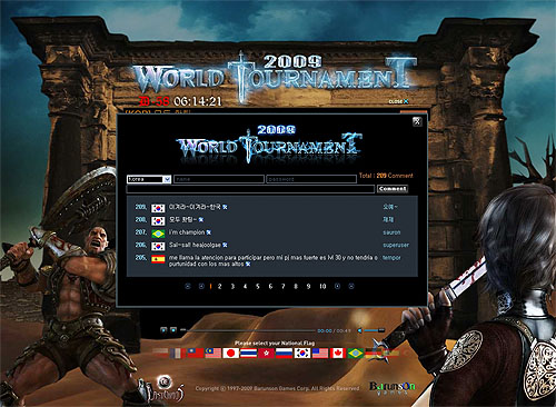 ...com)는 다중접속온라인게임(MMORPG) <라스트카오스>의 ‘2009 월드 토너먼트(WORLD TOURNAMENT)’에 참가할 대한민국 국가대표를 선발했다고 17일 밝혔다. 라스트카오스는 지난 8월, 월드 토너먼트 국가대표 선발전을 전 세계 15개국 동시에 시작했으며