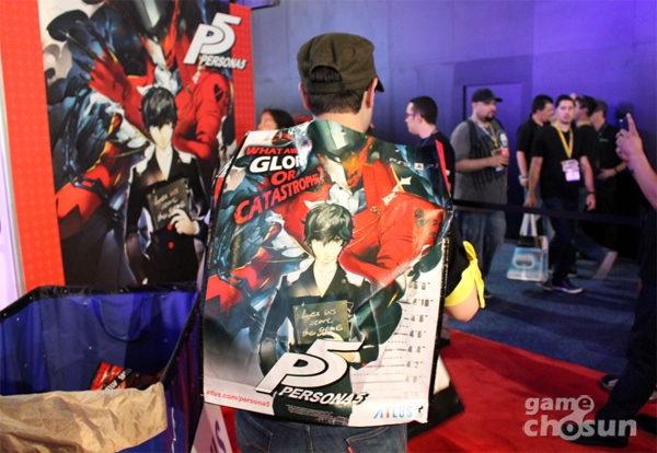 ... 배지는 E3 입장에 필요한 입장권과 같은 역할로 관람객의 소속과 성명이 기재돼 있다. 지난해에 이어 올해도 아틀러스가 E3의 스폰을 맡아 배지에 자사 게임 이미지를 넣는 혜택을 가져갔다. 올해는 신작 '페르소나5'가 그려진 배지가 주어졌다