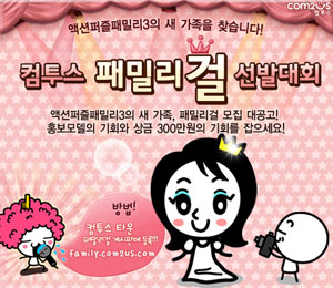 ...com)는 자사의 대표 모바일 퍼즐 게임 ‘액션퍼즐 패밀리3’의 올 가을 출시를 앞두고 홍보모델을 선발하는 ‘컴투스 패밀리걸 선발대회’를 개최한다고 오늘 밝혔다. ‘컴투스 패밀리걸 선발대회’는 전국의 17세 이상의 여성이라면 누구나 지원 가능하며 선발된 모델은 향후 ‘액션퍼즐 패