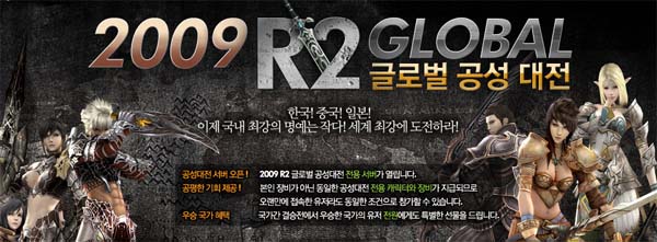 ... 또한, 이번 경기에서 우승한 팀에게는 명예를 표시하는 <R2> 우승반지 아이템을 선물 하며, 우승국가에게는 전서버 경험치가 2배로 증가 되는 등 승리의 명예뿐만 아니라 국가적인 차원의 혜택도 제공 할 예정이다. ‘한중일(韓中日) 공성대전’에 출전할 국가대표 100명을