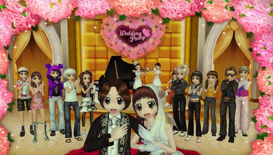 ... 웨딩파티에 참여하는 가상 커플은 웨딩드레스와 턱시도를 입고 하객들의 게임머니 축의금을 받고, 부케를 던지거나 기념 촬영을 하는 등 실제 결혼식과 같은 분위기를 맛볼 수 있다. '오디션'은 이번 웨딩파티 모드 리뉴얼을 통해 웨딩파티 전용 스테이지, 전용 드레스와 턱시도 및 음