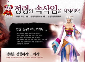 ...co. kr)가 ‘펫 시스템’을 도입하고 이를 기념하여 이벤트를 준비했다고 밝혔다. 정령의 속삭임을 차지하라!라는 타이틀로 진행되는 이번 이벤트는 8월 13일부터 8월 27일까지 참여 할 수 있으며 새로이 도입된 ‘펫 시스템’을 가장 먼저 체험해 볼 수 있는 이벤트이다
