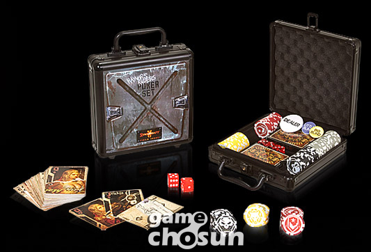 ... 이는 오는 21일 미국 애너하임에서 개최되는 블리자드의 자체 게임 행사 '블리즈컨 09'에서 독점 판매되는 제품이다. 이 세트는 일명 '야전판' 포커 세트로 라스베이거스 스타일 포커 칩 4종 세트(98개)와 카드 2벌, 주사위 그리고 이 모두를 담을 수 있는 휴대용 가방 등