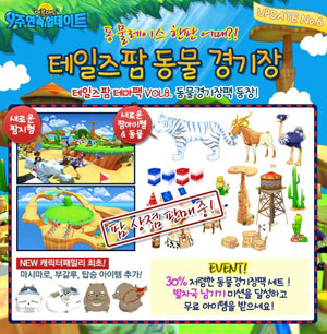 ...co. kr)가 ‘여름에도’ 9주 연속 업데이트 여섯번째 ‘테일즈팜 동물경기장’을 업데이트 한다. 게임 속 나만의 공간 ‘테일즈팜’은 게임을 통해 획득한 경험치 및 영양수로 동, 식물을 키우며 그로 인한 수확은 물론 자신의 공간을 꾸밀 수 있는 하우징 시스템이다