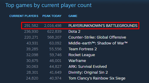 ... ▲ 국내 PC방 점유율 집계 (좌 게임트릭스, 우 멀티클릭, 11일 기준) ‘배틀그라운드’는 국내 PC방 점유율에서도 눈에 띄는 상승세를 보이고 있다. 정식 PC방 서비스 전임에도 현재 PC방 통계업체 조사에서 점유율 상위권을 기록 중이다. 이 게임은
