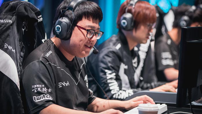 ... 21분경 삼성은 '앰비션' 강찬용(카직스)이 미드 갱킹을 통해 '프로즌' 김태일(카사딘)을 잡아내며 킬 스코어 동수를 맞췄다. 23분 열린 드래곤 교전에서 삼성이 '룰러' 박재혁(자야)의 맹활약으로 화염 드래곤을 가져감과 동시에 에이스를 기록하며 급격하게 삼성 쪽으로