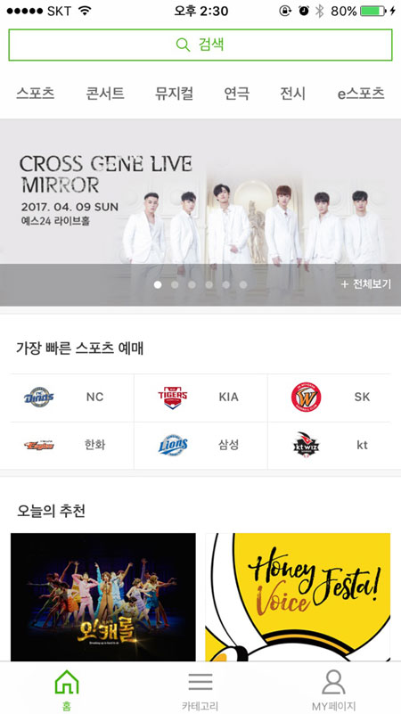 ... 메인 화면에 노출되는 ‘오늘의 추천’, ‘티켓 오픈’, ‘공연전시 기획전’ 콘텐츠는 전체 예매 시 장 정보를 빠르게 파악할 수 있도록 돕는다. 또한 모바일 직접 발권 기능인 ‘스마트티켓’을 통해 편의성을 높였다. 티켓링크 통합 앱에서 예매 시 ‘스마트티켓’ 발권을 선택