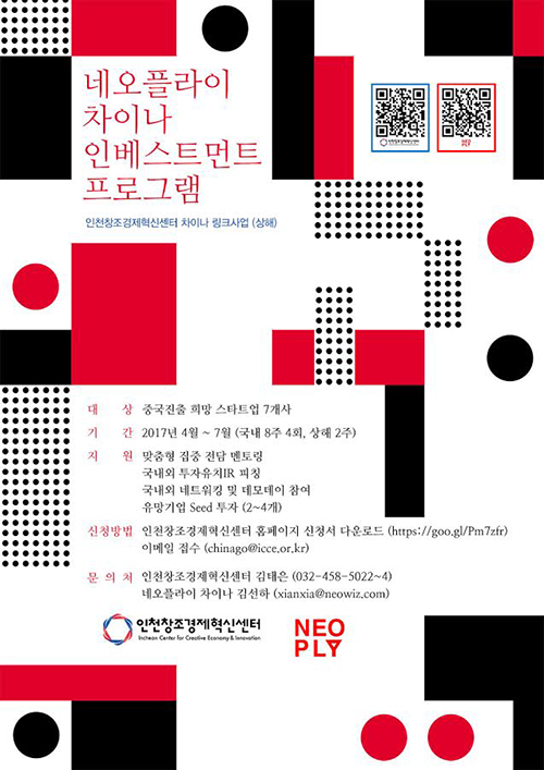 ...‘네오플라이 차이나’는 중국 진출 역량을 가진 신생 스타트업 및 초기 단계 스타트업을 지원하는 프로그램으로, 2017년 3월부터 성공 잠재력을 가진 창업 기업을 위해 ‘인천창조경제혁신센터’와 함께 ‘네오플라이 차이나 인베스트먼트 프로그램’를 설계해 진행해 나가고 있다. 이번 프로그