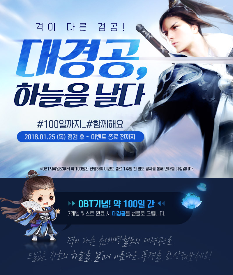 ... 해당 이벤트는 캐릭터 7레벨 달성 시 '서장:강호출두 [오리무중]' 퀘스트를 통해 대경공을 배울 수 있는 아이템 '아의능운'을 획득하는 것으로 누구나 손쉽게 참여할 수 있다. ◆ 신도 ◆ 태백 ◆ 신위 ; ◆ 개방