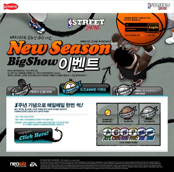 ... 오늘부터 8월 25일까지 4주간 진행되는 이번 프로모션은 게이머들이 손쉽게 참여할 수 있는 다채로운 소규모 이벤트들로 구성되어 있다. 우선 온라인 게임에서 최초로 시도되는 일반인 ‘캐릭터 선발대회’가 개최된다. NBA 스트리트 온라인에 등장할 새로운 캐릭터를 뽑는 이벤트로