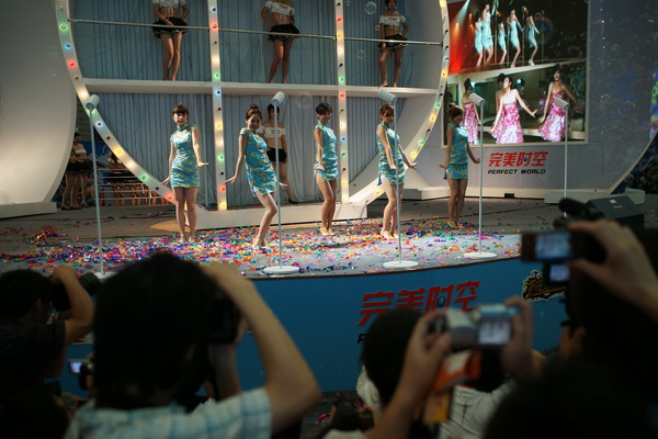 ...com이 차이나조이09전시장 내부스이벤트로 성인들을 대상으로 하는 섹시 댄스인 봉춤을 준비한 것. 행사장 내 관람객들의 시선을 사로잡기위한 과도한 경쟁이 극으로 치달은 상황이라고 볼 수 있다. 봉춤이 진행될 때는 관람객들이 모여들어 시선을 집중했지만 끝난뒤에는 이내 민망한 듯