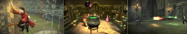 ... ▲ 퀴디치 : 게이머는 비행코스를 빠르게 주파하려면 퀴디치 링들의 최대한 정중앙으로 통과해야한다. 정중앙으로 통과하면 비행시간이 연장되고 Wii 버전의 경우 빗자루를 탄채 커브를 잘 주기 위해 리모콘을 약간씩 흔들어 주면 된다. ▲ 물약 : 물약제조는 재료를 집어들면