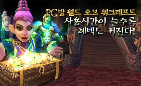 ...co. kr)는 월드 오브 워크래프트 상품을 구매한 PC방이 ‘PC방 월드 오브 워크래프트 사용시간이 늘면 혜택도 커진다!’ 이벤트를 개최한다. 7월 1일부터 8월 31일까지 2개월 동안 진행되는 본 이벤트는 2009년 3월 31일 이전에 월드 오브 워크래프트 가맹점으로 등록된 모