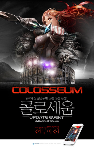 ... 그라비티는 업데이트를 기념해 25일까지 이벤트를 진행한다. 먼저 콜로세움 5 스테이지까지 클리어 한 모든 이용자에게 50루비를 지급하며, 콜로세움에서 가장 높은 전투 기록을 달성한 스테이지를 스크린샷으로 담아 공식 카페에 인증하면 추첨을 통해 10명에게 200루비를 증정한다.