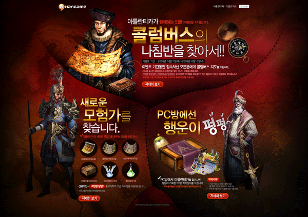 ...com)에 보내 준 관심과 성원에 보답하고자, 6월 10일까지 20일간 보다 신나게 게임을 즐길 수 있는 아이템을 지급하는 특별 이벤트를 실시한다. 우선, 한게임은 하루 2시간 이상 접속한 레벨 20 이상의 게이머들에게 콜럼버스의 지도를 지급한다. 게이머들은 콜럼버스의 지도를