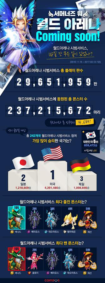 ... 하루 평균 25만 건이 넘는 대전이 전세계에서 실시간으로 진행된 셈. 특히 해당 기간 동안 총 2억3,700여 마리의 몬스터가 경기에 동원됐으며, 이는 우리나라 총 인구수의 4. 6배에 달한다