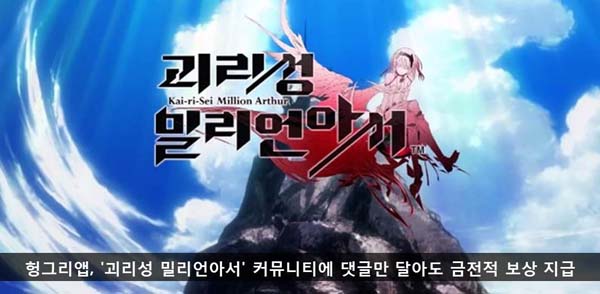 ... 이번 이벤트는 ‘괴밀아, 본격 리세마라 상담소!’로 ‘괴리성 밀리언아서 헝그리앱’ 커뮤니티에 등록된 캐릭터 선정에 대한 상담 글 등에 정성을 다해 답변을 달아준 참가자를 선정하여 구글플레이 기프트 카드를 지급한다. 본 이벤트는 6월 10일까지 진행되며 자세한 내용은 ‘괴리