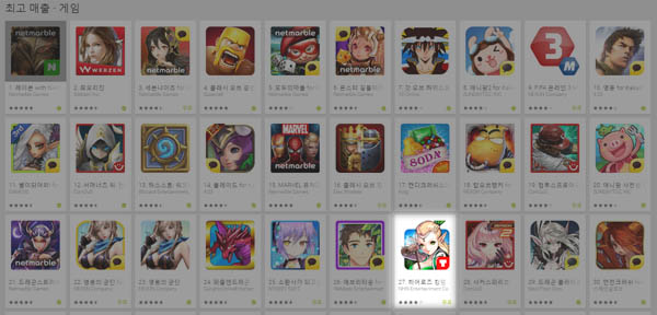 ... ▲ 히어로즈킹덤은 2015년 6월 3일 구글 플레이 매출 순위 27위를 기록했다. 유영욱 NHN엔터테인먼트 히어로즈킹덤 사업 총괄부장은 게임 공식 카페 공지를 통해 "아직 히어로즈킹덤은 본격적인 마케팅과 홍보를 들어가지 않은 상황으로 조만간 시작될 예정이다" 라며 "