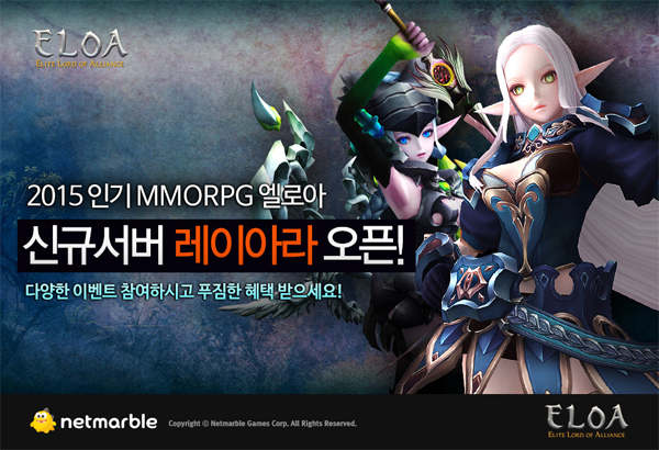 ... 또 6월 14일까지는 게임 접속 시 제공되는 기존 출석 보상 외 에바의 눈물, 에바의 숨결, 에바의 판도라 상자 등 다양한 아이템을 추가로 제공한다. 넷마블 조신화 사업부장은 “28일부터 시작한 네이버게임 채널링 서비스를 통해 보다 많은 이용자들이 쉽게 ‘엘로아’를 즐길 수