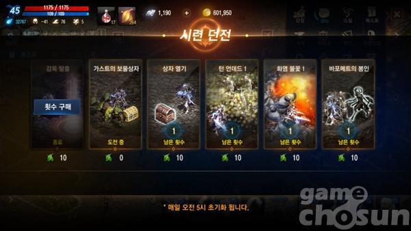 ... 시련 던전은 인근의 마을 등 세이프티 존에서만 진입이 가능하며 각 던전 입장 시 본래 아인하사드의 축복을 40씩 소모했으나 22일 업데이트로 소모값이 10으로 줄어들었다. 한번 입장료를 지불한 시련 던전은 클리어하지 못했더라도 다음날 오전 5시 전까지 얼마든지 재도전할 수