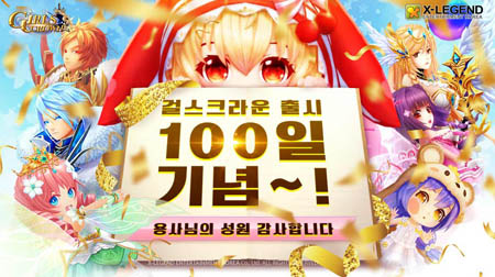 ... 엑스레전드엔터테인먼트 코리아는 자사의 모바일게임 '걸스크라운' 출시 100을 맞아 기념 이벤트를 진행한다고 전했다. 이벤트는 100일 기념 쿠폰 및 게임 아이템 제공과 2주간 스토리던전을 추가로 3회 플레이할 수 있는 기회 제공, 전투력 달성 이벤트 초기화 등으로