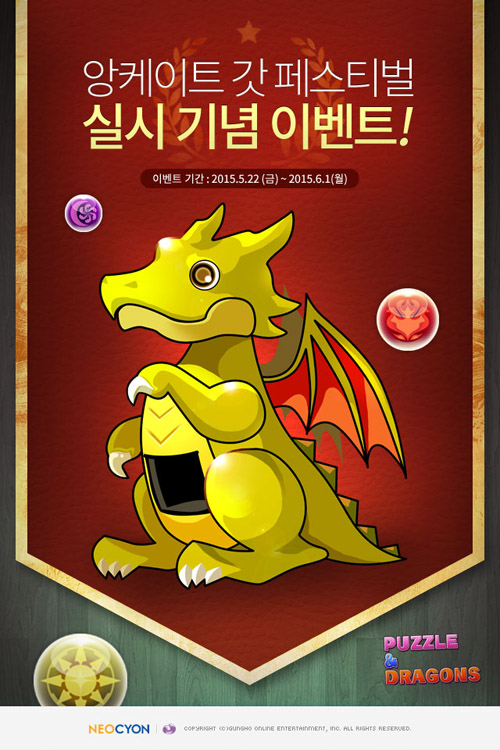 ... 같은 기간 동안 메탈, 골드, 루비, 사파이어, 에메랄드 드래곤의 게릴라 던전이 등장하며 킹 드래곤의 등장 확률은 2배로 오른다 또한, 화요일부터 금요일까지 요일 던전의 드랍률이 2배가 되고, 주말 던전의 코인 드랍률이 2배가 되며, 강화합성시 스킬 레벨업 성공 확률은 2. 5배