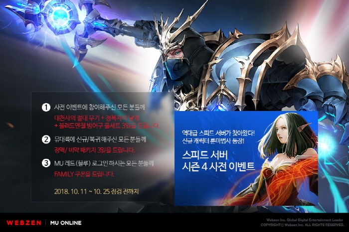 ...웹젠은 먼저 ‘오리지널 리부트 서버’에서 ‘보물상자’와 게임재화(실버)를 모아 ‘고대의 무기 강화 주문서’, ‘고대의 방어구 강화 주문서’ 등으로 바꿀 수 있는 ‘프리미엄 보물상자 교환 이벤트’를 마련했다. 이용자들은 ‘애쉬번/블랙랜드/바이런/로덴’ 마을의 ‘떠돌이 교환상인 아크