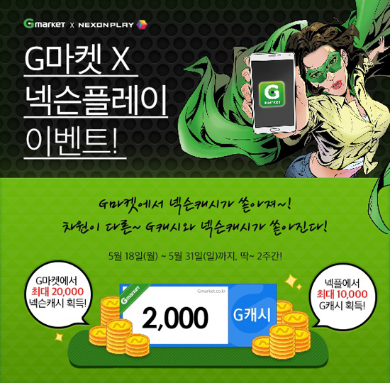 ... 신규 ‘플레이박스’는 ‘넥슨플레이’의 잠금화면 활성화 및 다양한 이벤트로 획득한 ‘플레이포인트’로 응모할 수 있다. 이 밖에도 ‘G마켓’ 어플리케이션 설치 후 상품을 구매하는 유저에게 구매 금액 50%를 ‘넥슨캐시’로 지급하고, 특정 조건을 달성하면 최대 ‘1만 넥슨캐시’를