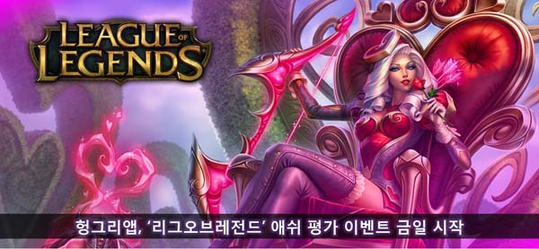 ... 이번 이벤트는 '애쉬 리메이크 평가하기'로 '리그오브레전드 헝그리앱' 커뮤니티에 업데이트된 애쉬에 대해 정성으로 작성한 참가자를 선정하여 헝그리앱 내에서 현금처럼 사용할 수 있는 밥알 포인트를 지급한다. 본 이벤트는 5월 20일까지 진행되며 자세한 내용은 '리그오브레전드